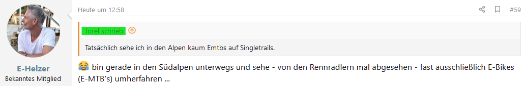 Natürlich hätte ich auch mal Spaß auf zB ein Pivot. Da zahle ich aber nachher wahrscheinlich das 1,5 fache gegenüber einem entsprechenden Cube. Ob es sich dann 1,5x so gut fährt (oder ob ich das ausloten kann) ist eben fraglich. Daher wird es bei mir gerade wieder ein Cube (AMS Hybrid One44 TM), noch dazu, da es mir der Bosch SX wirklich angetan hat (im Vergleich zum Shimano RS (Rise) und Fazua 60 (Focus)).