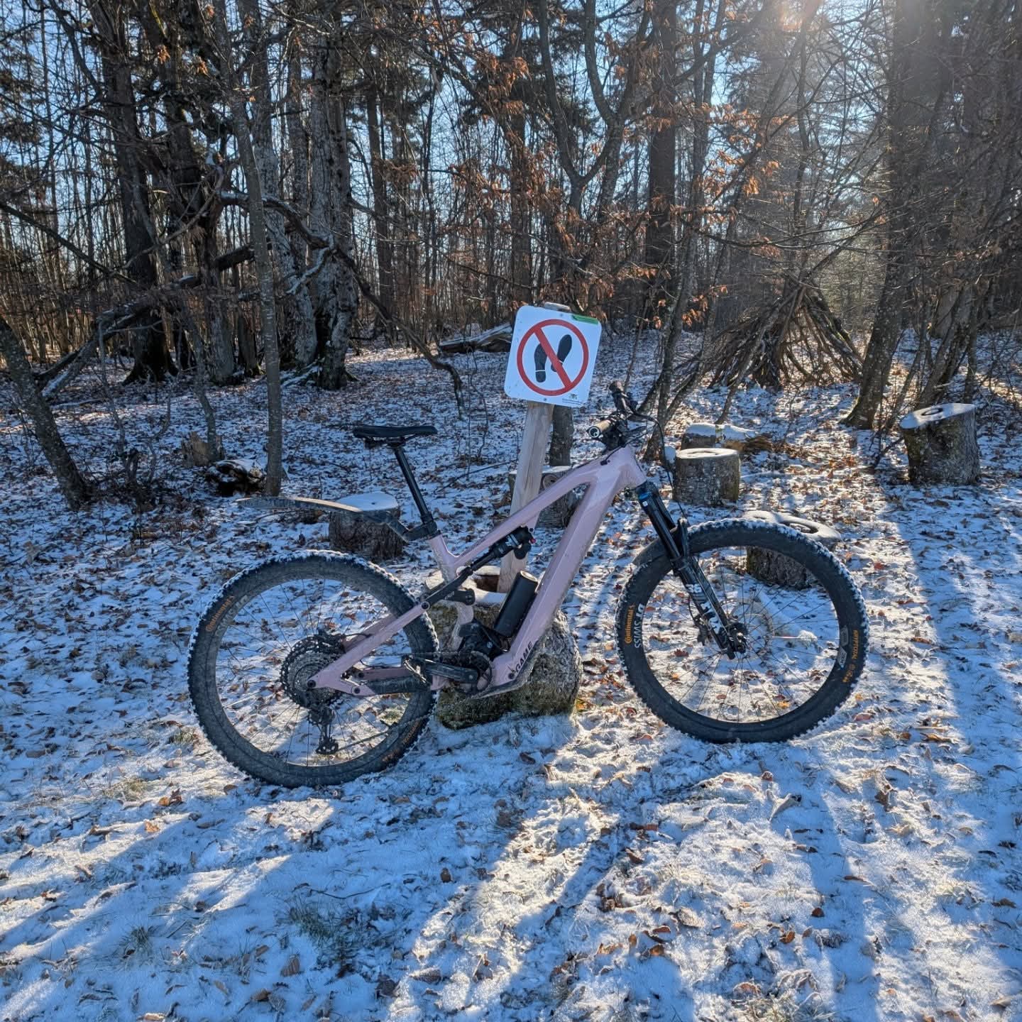 Schön frisch heute, aber dafür freie Trails. Den Akku haben die -7 bis 0 Grad auch nicht so sehr beeindruckt. 55% Rest (600er und RE) auf 47 Km, 950 Hm. 29 Km Motor Off, der Rest hauptsächlich Eco gedrosselt auf 60 Nm, max. 300 Watt und max. 50% Unterstützung. Schön war's.