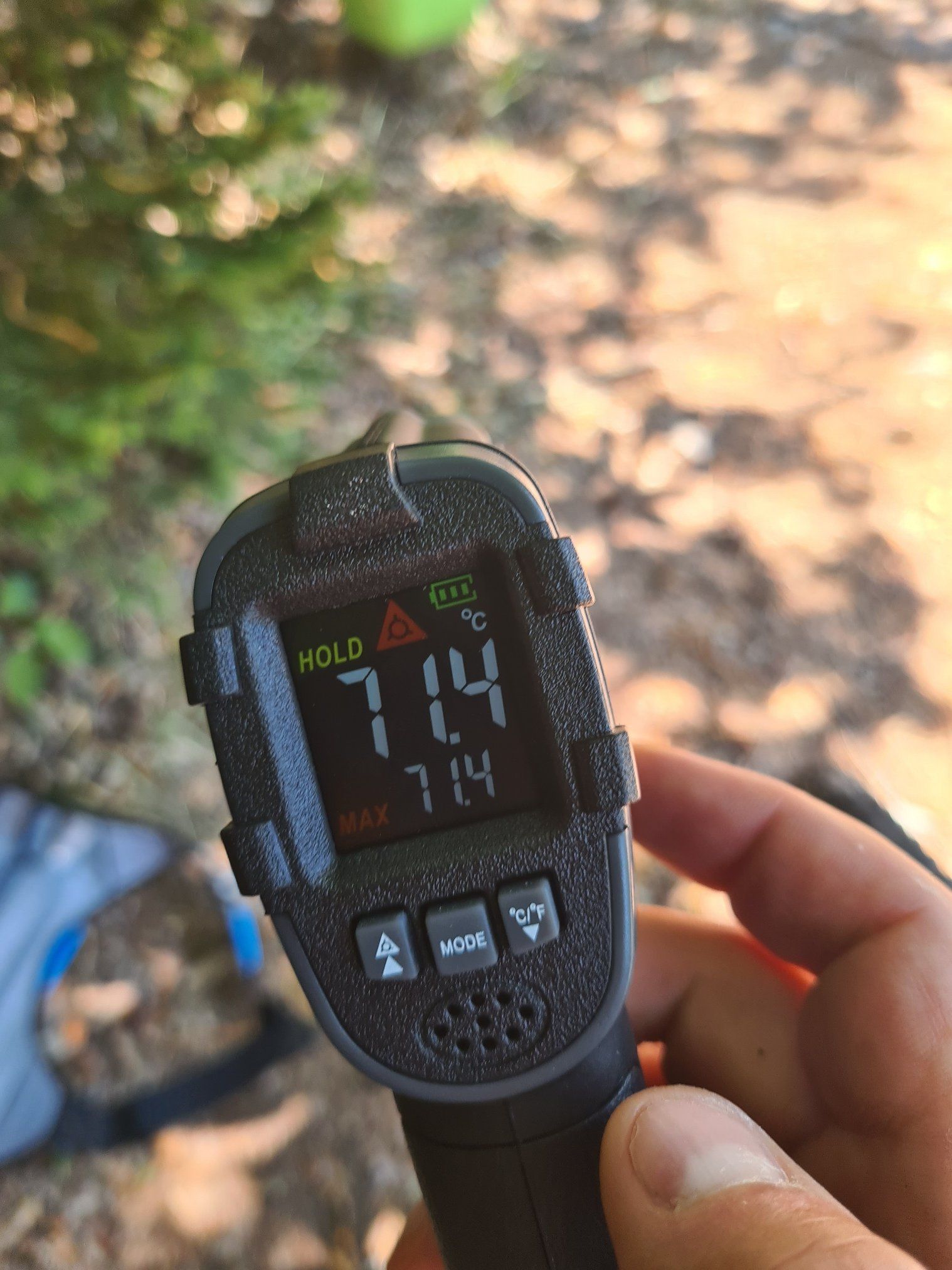 Hatte schon am Beginn des Anstieges knappe 60° am Motorgehäuse (ca. 12km noch halbwegs flache Anfahrt, 40hm etwas steiler, dann an einem Flachstück gemessen), nach ca. 200hm merkte ich, wie der Motor Leistung raus nahm. Bei 370hm hat sich dann der Motor abgeschaltet, gemessen 76,9°.