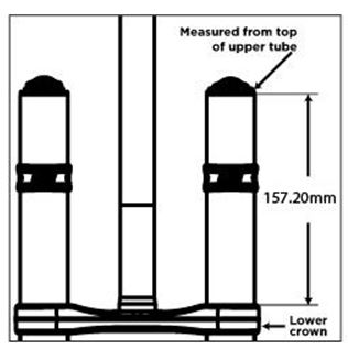 Das Maß ist erst mal unabhängig von Spacern unter der oberen Brücke. Bei den 157.2 kann man laut Fox auf 147.2 heruntergehen.