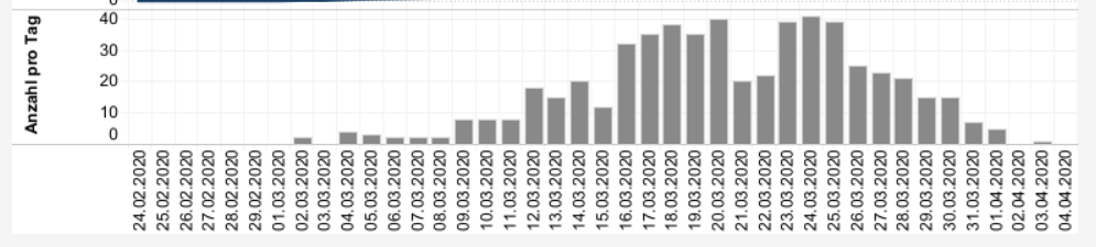 Von weiter oben ist bekannt, dass etwa 10% aller wirklich mit dem Virus infizeiten ins Spital müssen. Die Kollektivstrafe wurde erlassen, um die allgemeine Ansteckung zu minimieren. So sieht deren Wirkung aus: