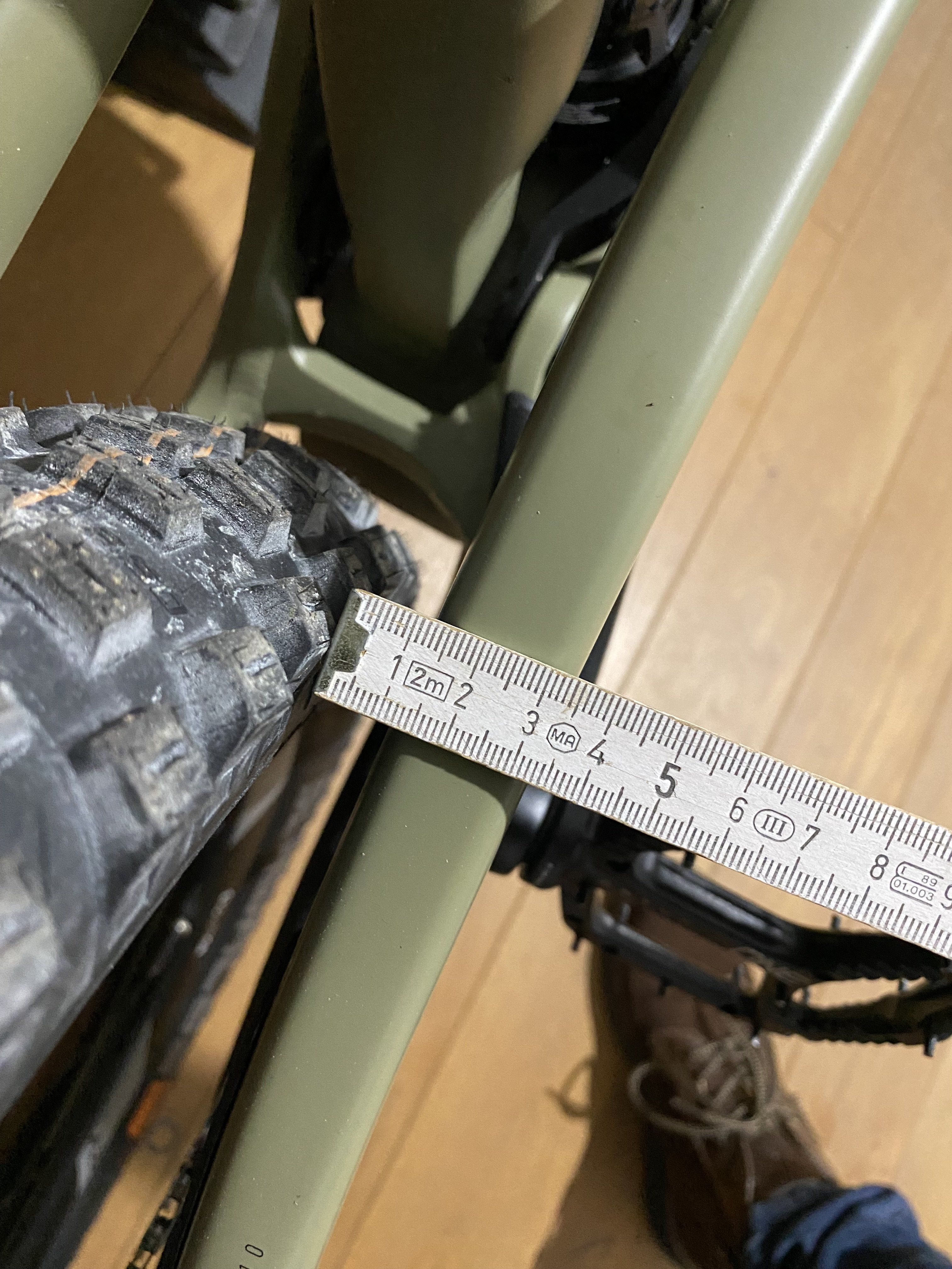 Könntest Du bitte mal schauen wieviel Platz im Rahmen für dickere Reifen verbleibt? Propain schrieb mir das bei 2.5" Feierabend ist, ich kann mir das schwer vorstellen & hoffe auf einen Fehler des Supports. Mille!