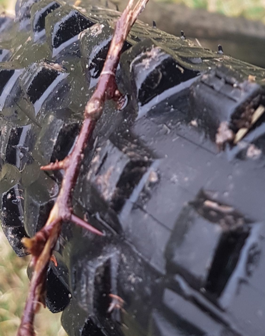 Schlauch klassisch geflickt und eingebaut. Fahre nur zum Waschen. Als ich zurück komme stehe ich nun wieder mit einem Platten da. Kein Km gefahren. Ich drehe durch, hat mein Flicken nicht gehalten? Baue alles auseinander und sehe daß 10 cm neben meiner Flickstelle ein recht großes, sichtbares Loch ist. Und ich sehe im Mantel schon einen 5 mm Stein sitzen. Recht spitz, aber komplett durchbohrt. Beim letzten mal hatte ich einen 1cm langen, kleinen Dorn einer Pflanze gefunden. Durch diesen