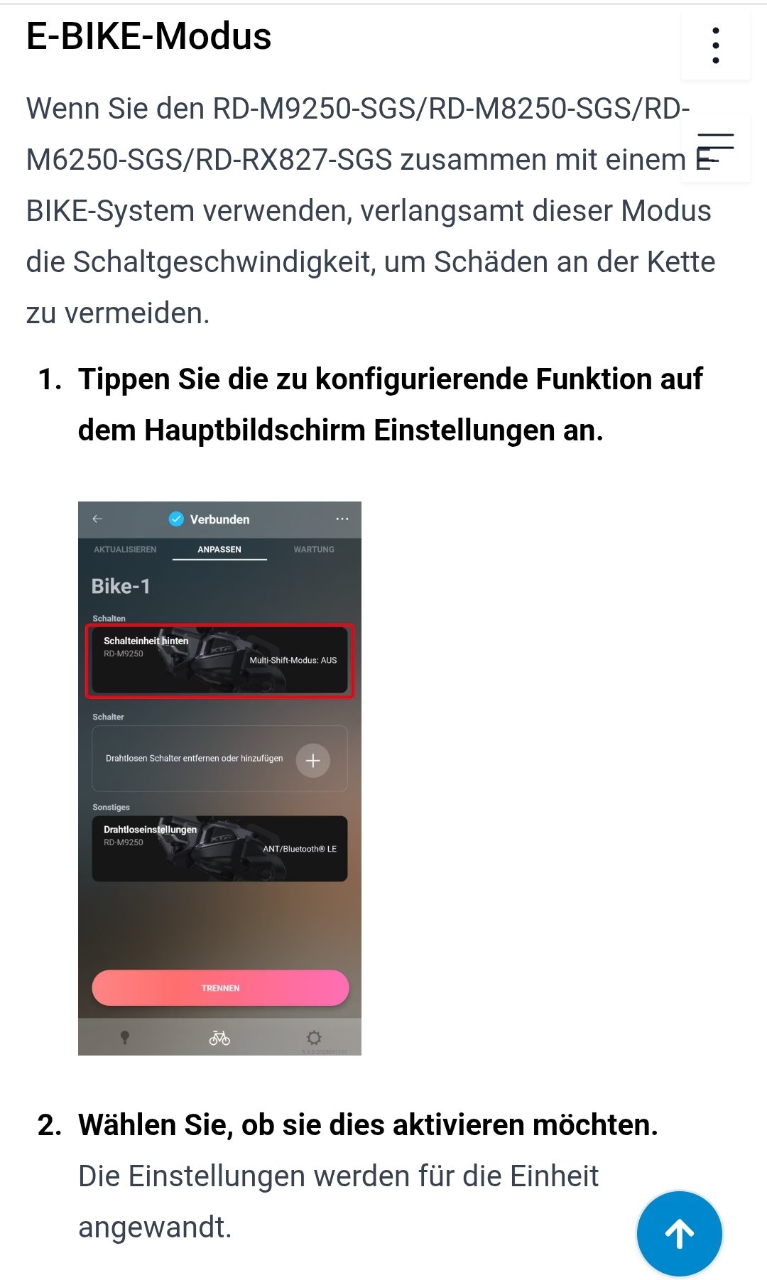 Ah ok, dann hast du ja das gleiche Setup wie ich. Mach dir morgen mal Fotos.Ich hab das RD-M8260 mit Kabel. Es gibt in der Anleitung aber Hinweise, dass es beim RD8250 einen EBike-Modus gibt, der beim motorunterstützten Bike aktiviert werden soll und die Schaltgeschwindigkeit verringert.
