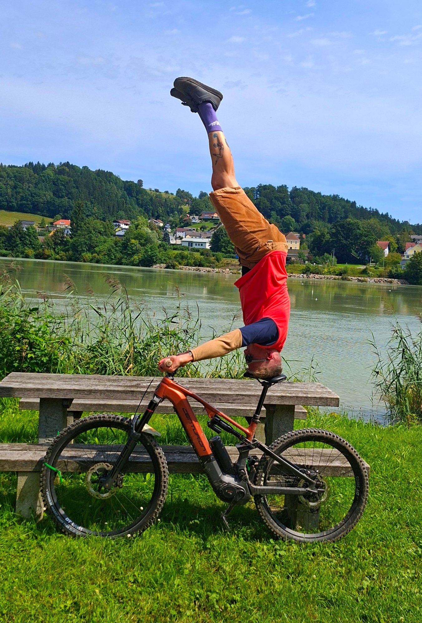 Wurde das Foto durch eine KI erstellt? Falls nicht, Hut ab! Ich schaffe nicht mal einen Kopfstand auf dem Boden